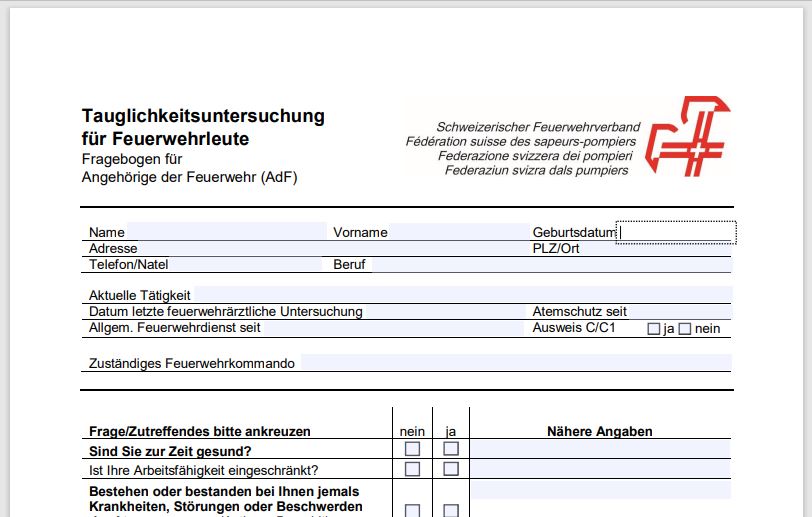 Unten kannst du das Formular "Tauglichkeitsuntersuch" auswählen und direkt Online ausfüllen, ausdrucken und zu deinem aufgebotenen Arztuntersuch mitnehmen.